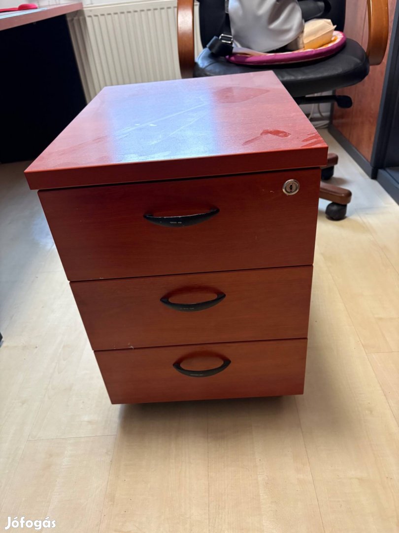 Irodai zárható 3 fiókos gurulós konténer eladó. 58,5 cm magas, 41,5 cm széles, 55,5 cm mély