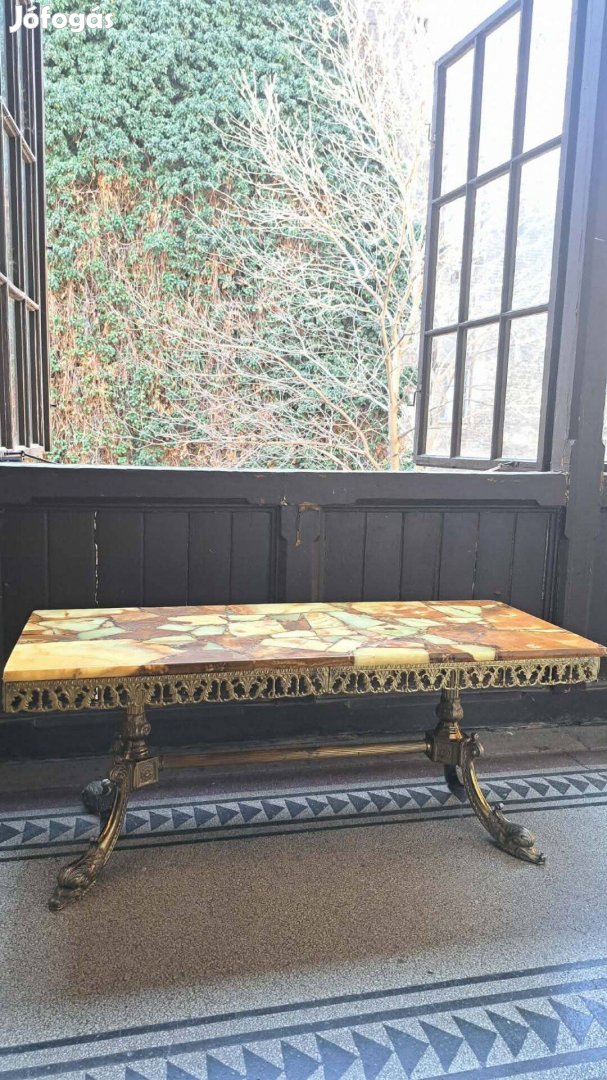 A lap: ónix/márvány mozaik gyantában (resin) nem egy tömör kőlap, hanem kompozit. Ez gyakori stílus az 1960-as/70-es évekbeli Olaszországból.