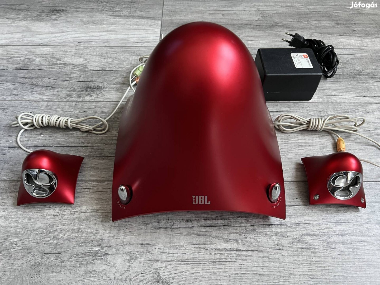 Eladó a képeken látható, piros, vezetékes, áramforrásról működő, JBL Creature II. hangszóró szett, külön állítható mély-magas, illetve basszus lehetőséggel. A hangerőt a magas hangszórón lehet állítani.
