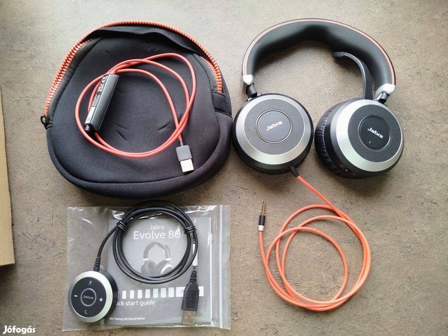 Eladó Jabra Evolve 80 típusú fejhallgató, minden tartozékával, dobozában. Kiváló, valóban újszerű állapotban, kb. 5 órát volt használva.