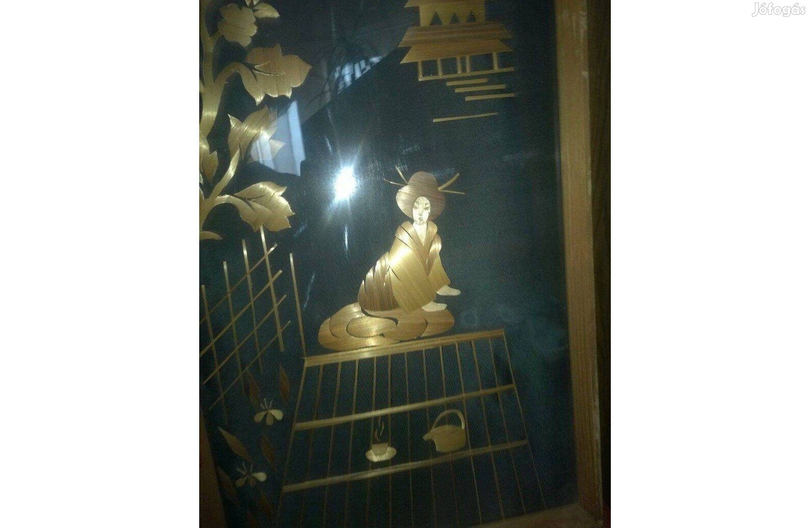 Keretezett japán stílusú berakásos technikával készült kép eladó.
