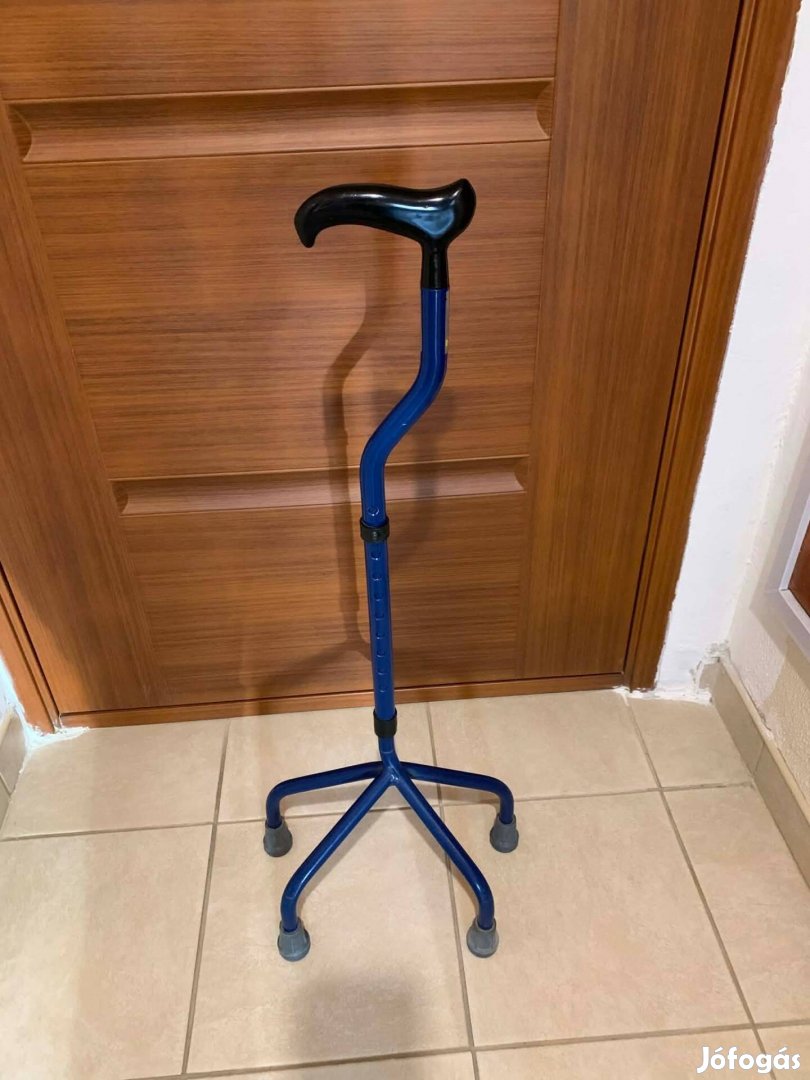 Eladó egy állítható magasságú 4 lábú fém járóbot, lábán egy kis festék kopással.