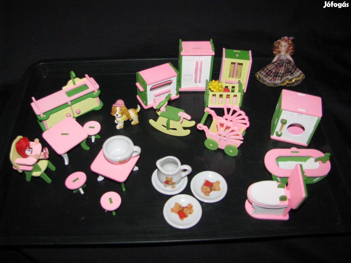 16 db babaházi fa kézműves bútor, kis méret. személyesen is Bp Őrs Vezér térhez közel. Konyhabútor, szobai bútor Fürdőszobai berendezés és mini porcelánok hozzá.