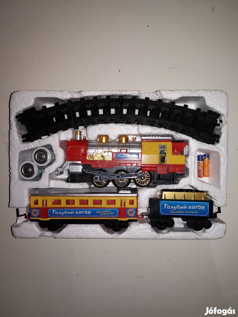 Eladó a képeken látható új játékvasút, kör alakú sínpálya 282cm hosszú. Világít, dalol, zenél, szuszog, nogyon jópofa,igazi karácsonyi ajándék. Elemek mellékelve.