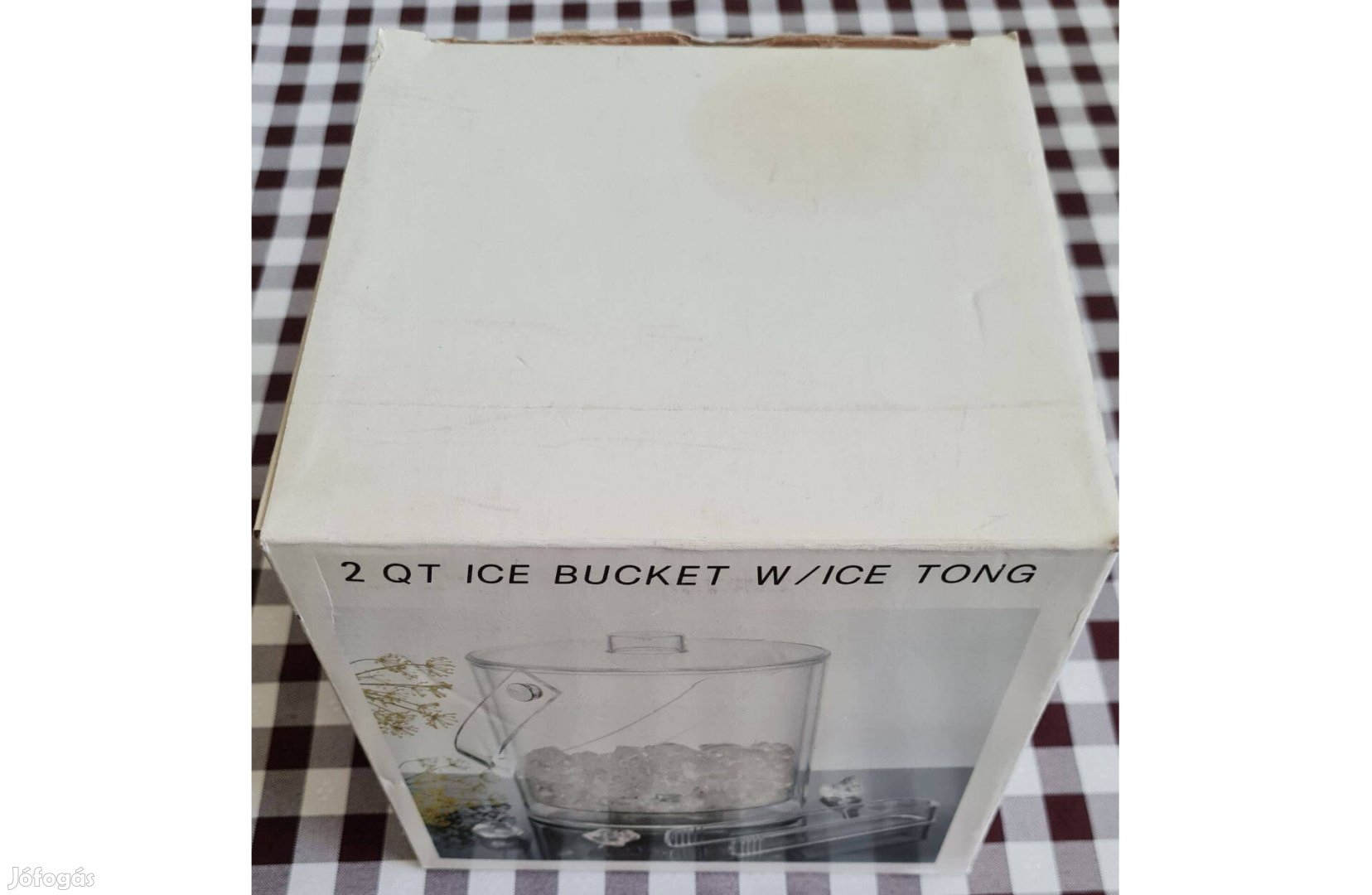 Eladó egy új dobozában átlátszó műanyag jégkocka vödör, fedővel, fogantyúval, csipesszel.