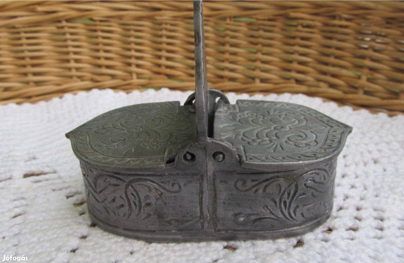Eladásra kínálom a képen szereplő jelzett Peltro ón só-bors tartót, kínálót. A képek magukért beszélnek. Körbe fotóztam.