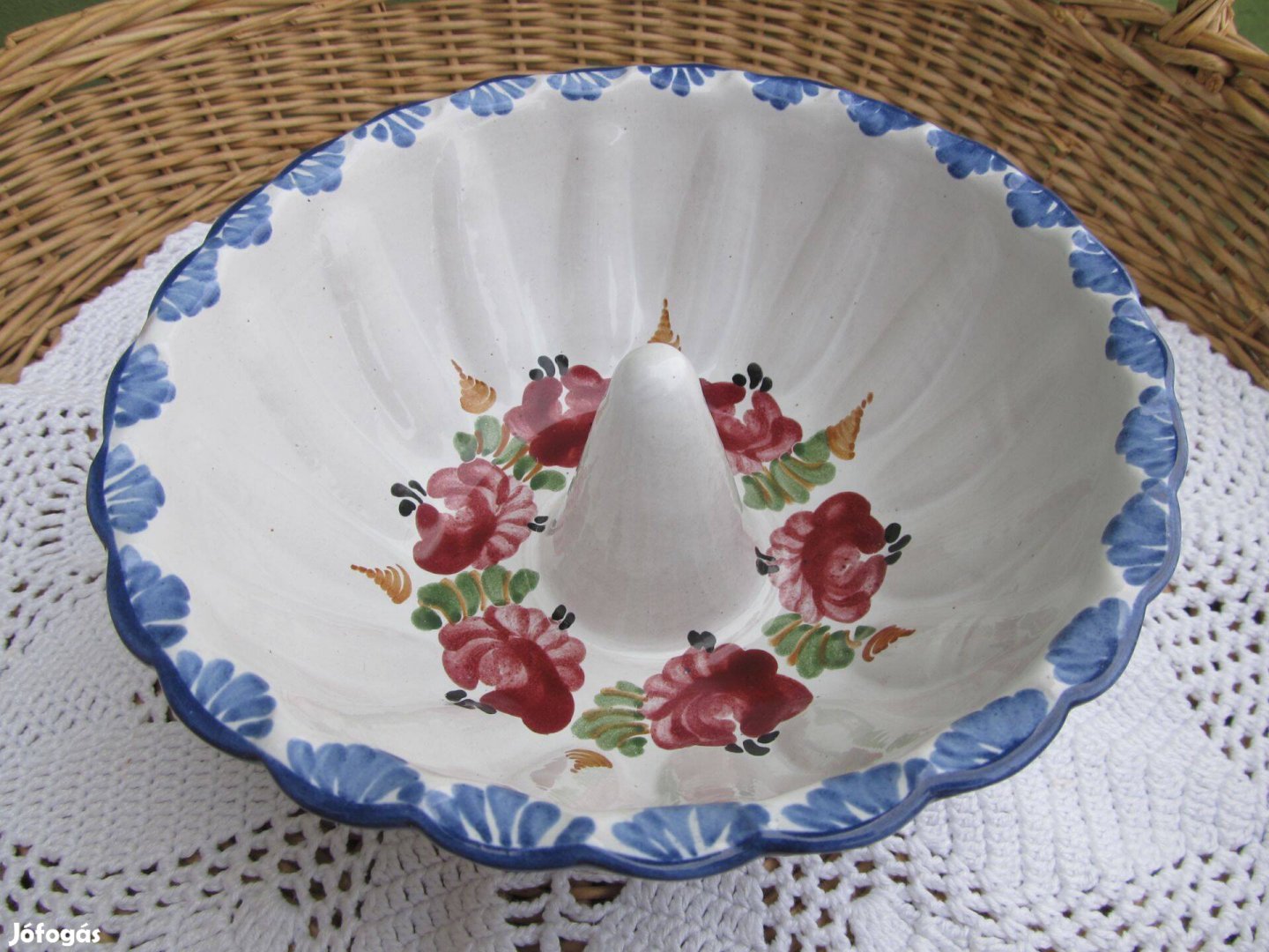 Jelzett, mindkét oldalán, kézzel festett, kerámia sütőforma