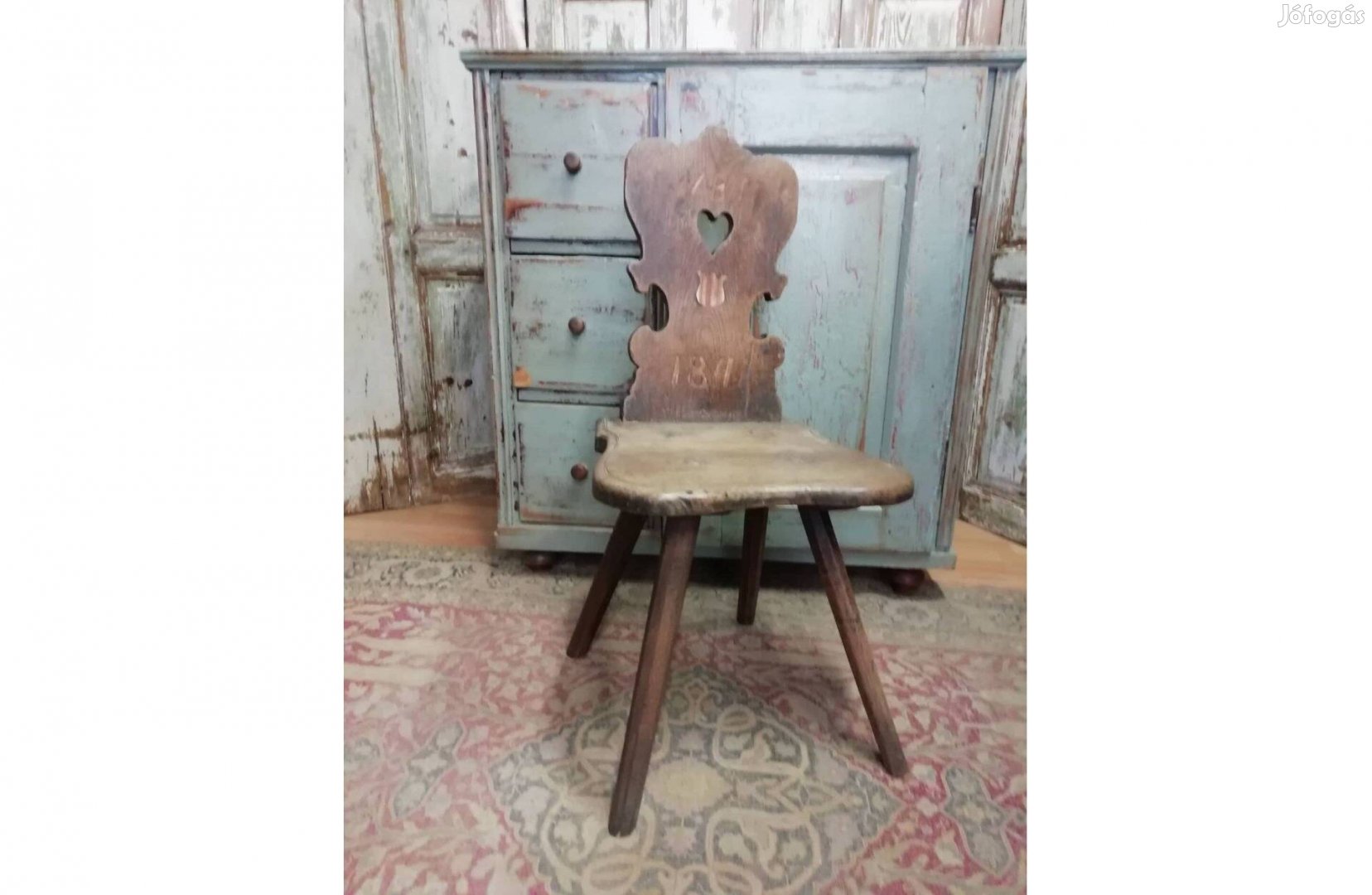 Eladó a képeken látható 1843-as keményfa szék. Monogramos, berakásos és a Nagyházi aukción lett vásárolva évekkel ezelőtt. Két láb cserélve lett, harmadikat javítottam, mert kicsit kopott volt. Stabil szép csapolt szék, egy szög, vagy csavar nincs benne Gyönyörű néprajzi tárgy, ára: 79.990.-