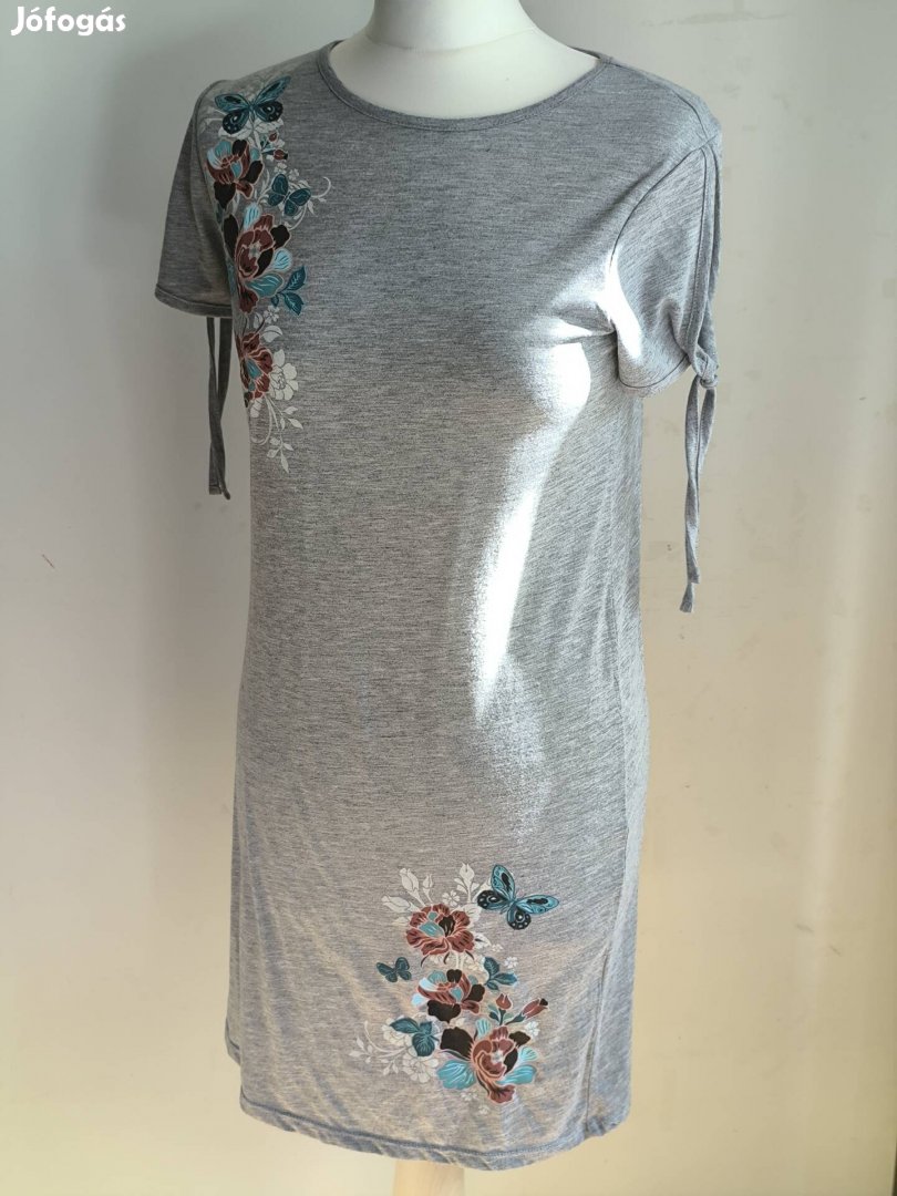 S- XS méretnek megfelelő, Bonprix szürke jersey ruha, vállaknál kivágással, virág mintával, térd fölé érő fazon.