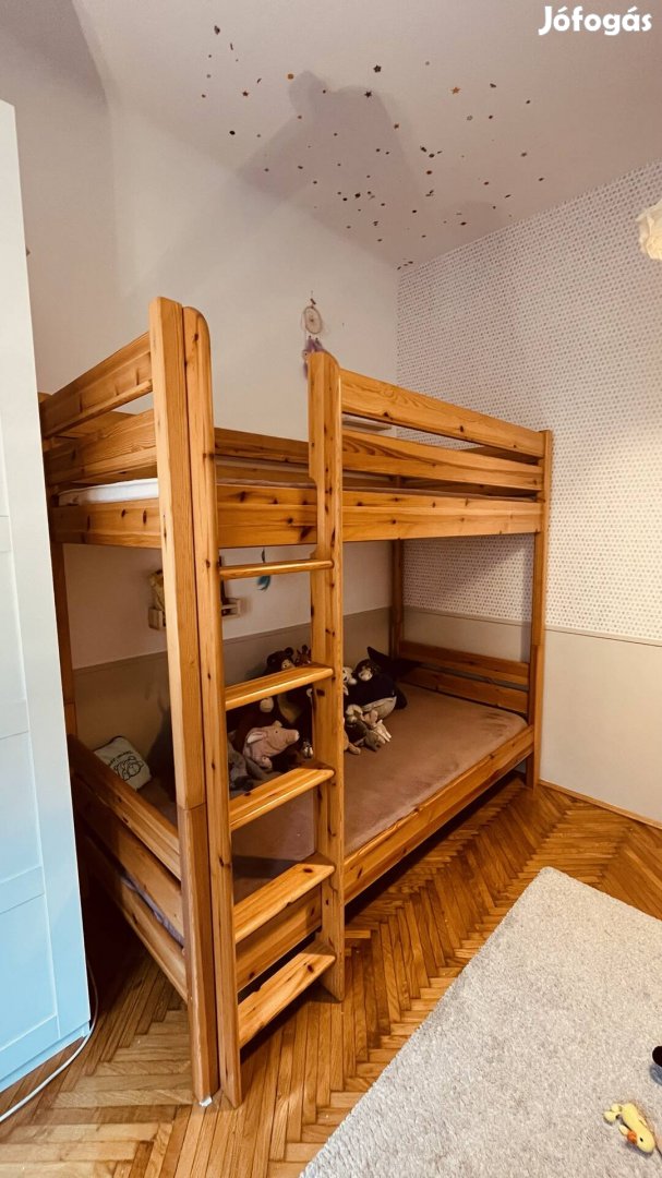Jó állapotú emeletes ágy 90x200 (külső méret 97x207, magassága 190 a felső korlátig)