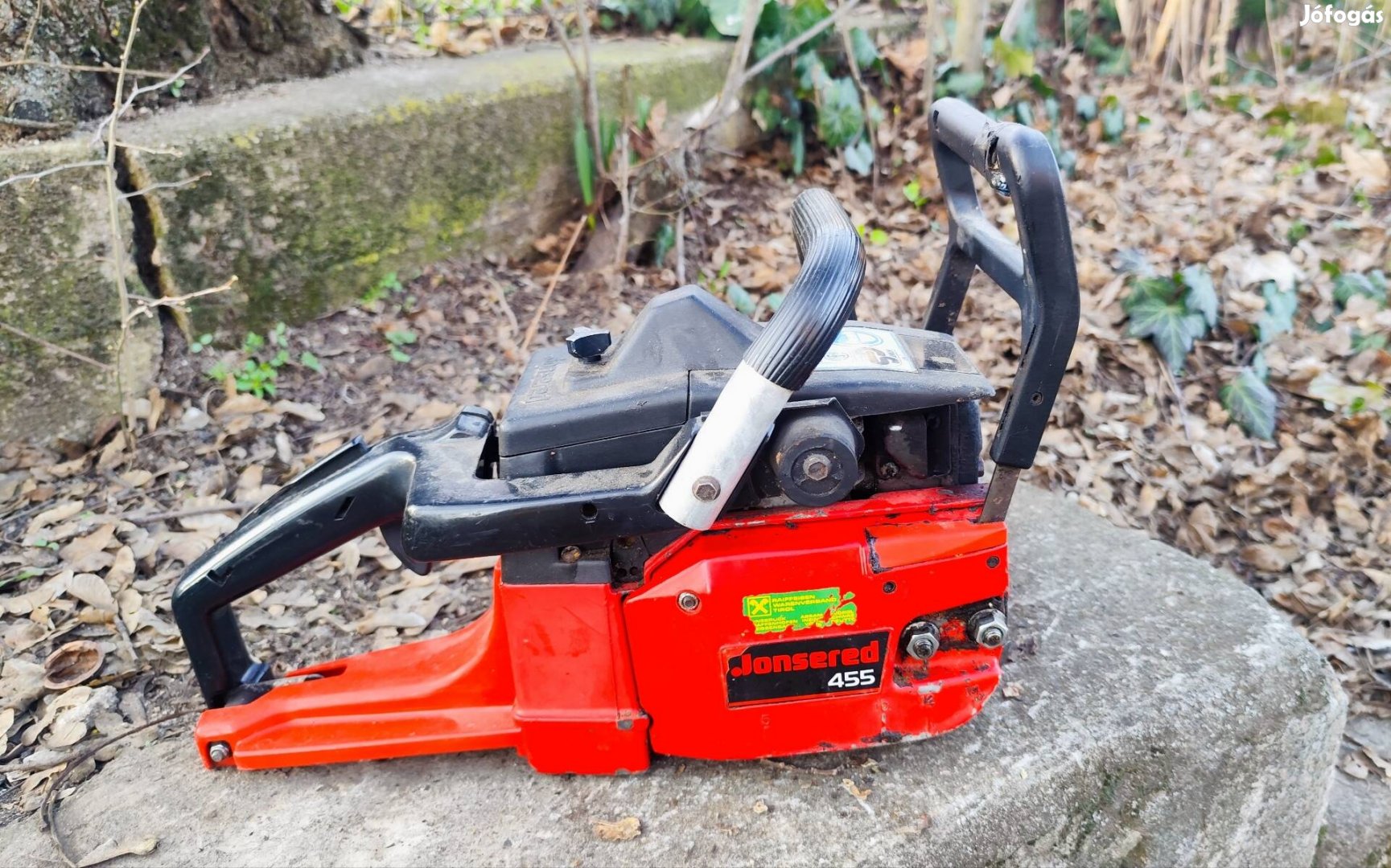 Eladó egy Jonsered 455 láncfűrész vezető, lánc nélkül. Nagy kompresszió, indul, működik! A fékkaron van törés, de lehet használni, egyébként a korához mérten szép állapotú. Fék, olajzás jó. Fix ár, szállítás megoldható. Külföldről behozott gép, átnézést, tisztítást igényelhet, garancia nincs.
