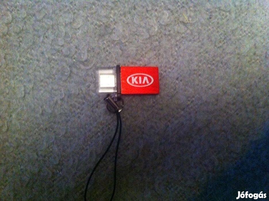 A dél-koreai KIA Motors autógyár piros színű mikro USB 2.0 pendrive-ja. A mérete 8 GB-os, rajta anyagok szöveggel, fotókkal, adatokkal, információkkal a KIA modellekről.