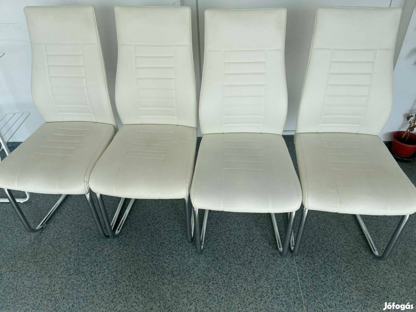 Eladó 4 db. műbőr huzattal ellátott korábban a Kika áruházban vásárolt étkezőszék. A huzat kopásból eredő sérülései a képeken láthatók. Az ár a négy darabra értendő, csak egyben eladó. Személyes átvétel Budapesten.
