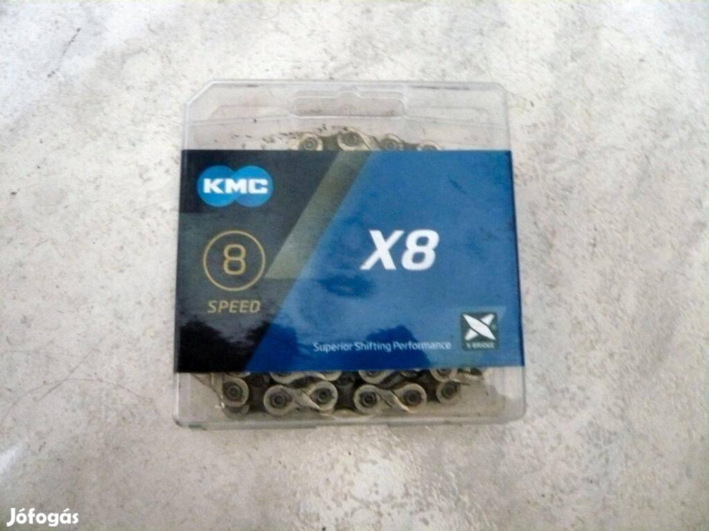 Eladó a képen látható rendszeresen karbantartott, teflonspray-vel kezelt Shimano/SRAM kazettához való használt KMC X8-as lánc, eredeti gyári dobozban. Ez a KMC 8-as rendszerhez való legjobb lánca. A lánckopás mérő szerszám alapján még biztosan elmegy jó pár kilométert.