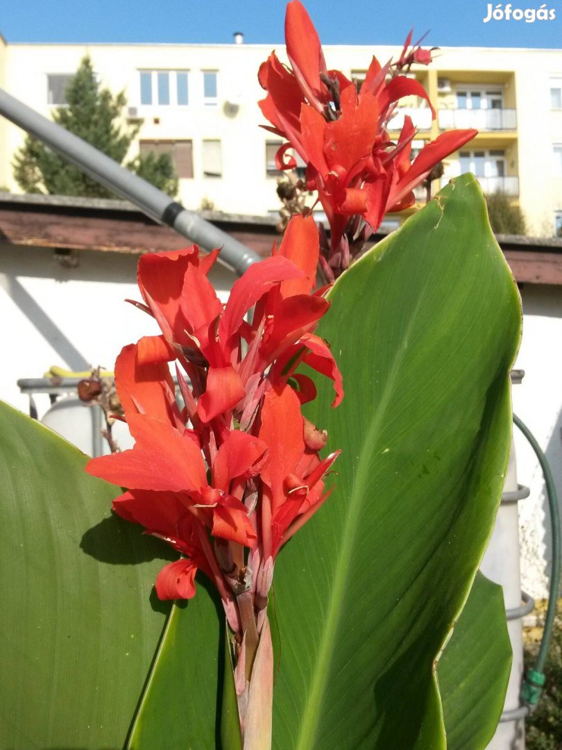 Eladó a képen látható kána /kanna/ virág gumója. Másfél méter magasra nő, piros virágú, késő őszig nyílik.