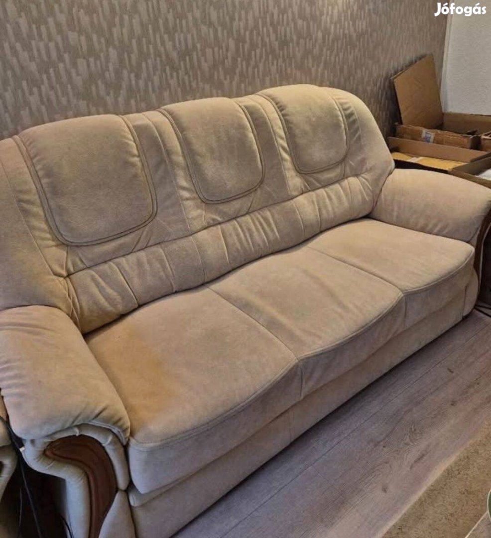 3 részes Andante textilbőr kanapé eladó, hibája fotózva és oldalán néhány helyen macska kaparás nyomok de egymás mellett ez észrevehetetlen.