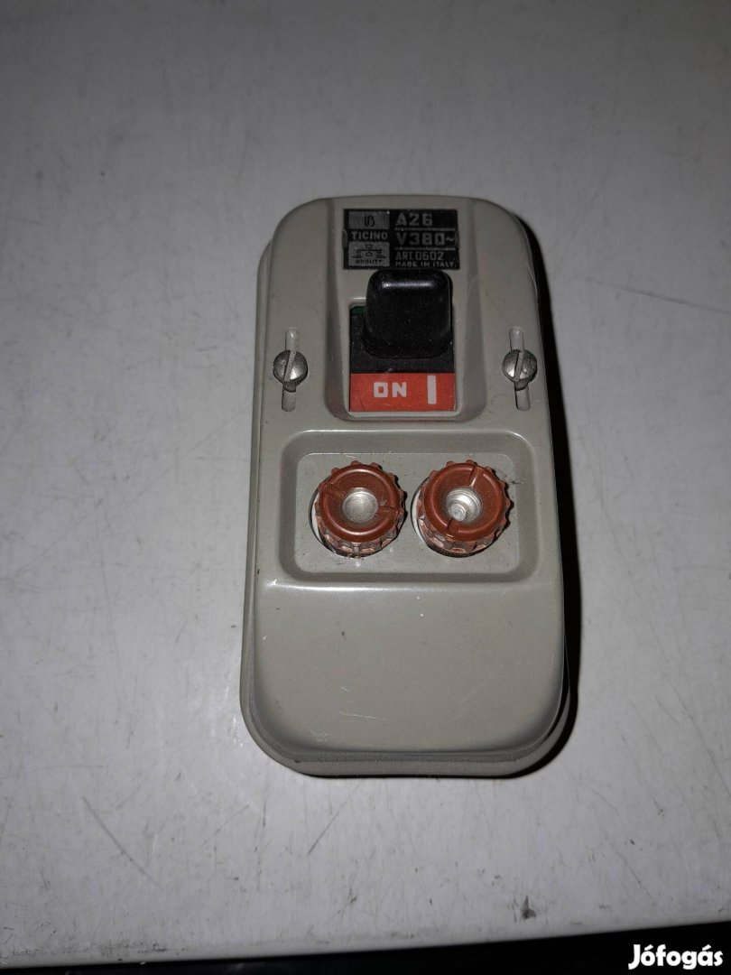 Kapcsoló, két pólust szakít. Biztosítékokkal védett áramkör ,porcelántest.