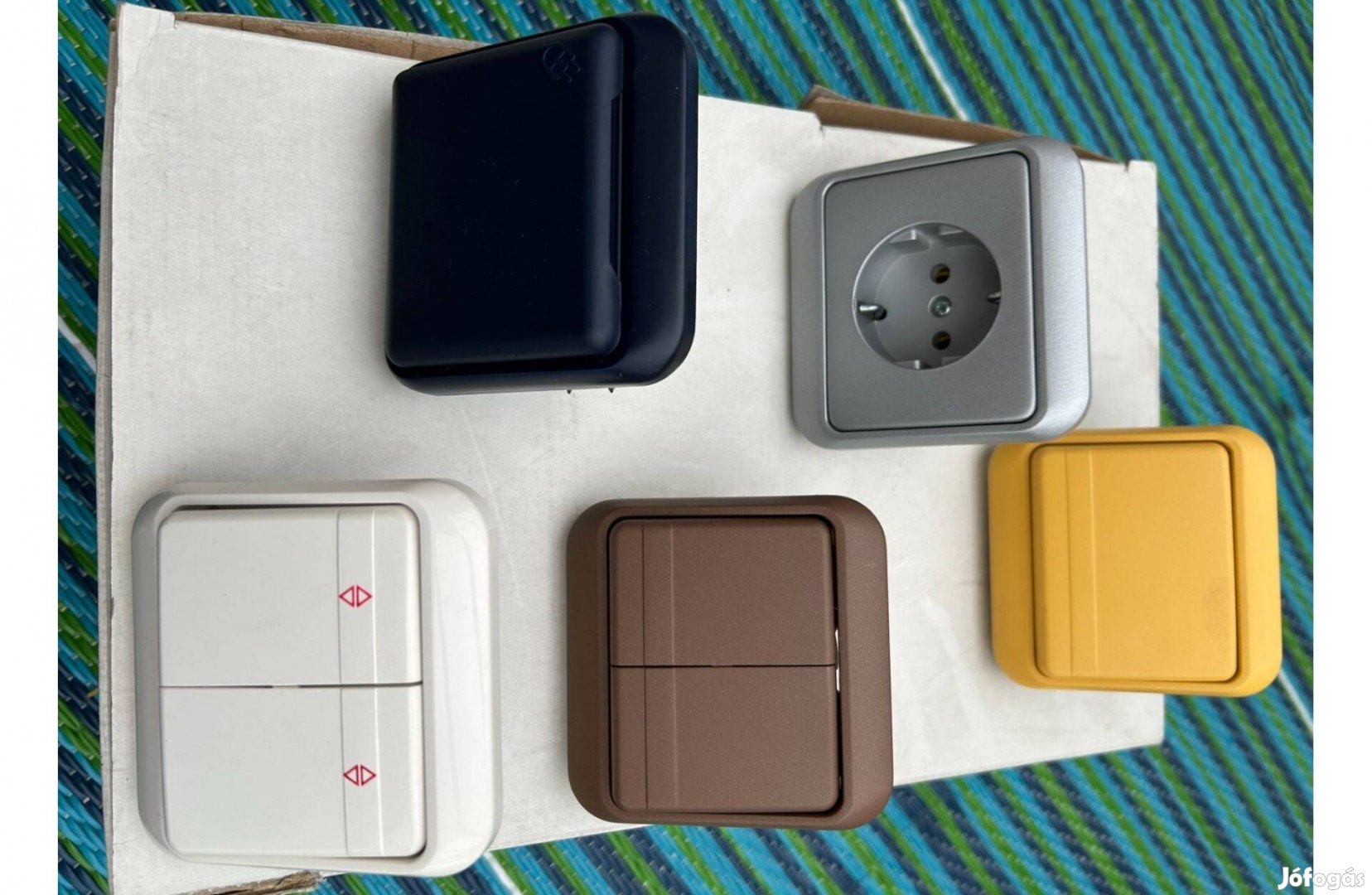 Barna csillárkapcsoló 5 db Kék csapfedeles dugalj10 db