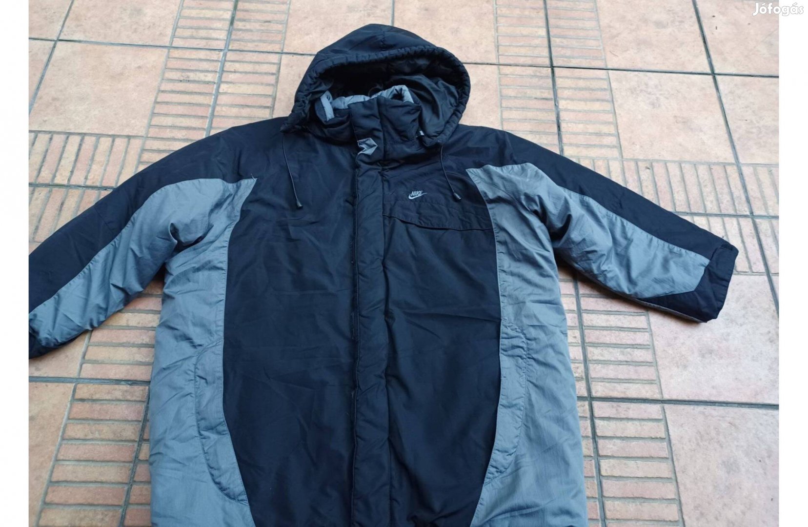 Eladó egy eredeti Nike, bélelt, levehető kapucnis, végig cipzáros és tépőzáras, állítható ujjvégű, cipzáros zsebes télikabát, beleírt L-es,
