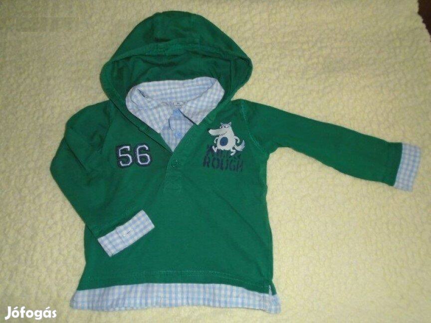 Kapucnis zöld színű hosszú ujjú felső 12-18 hó (méret 86)