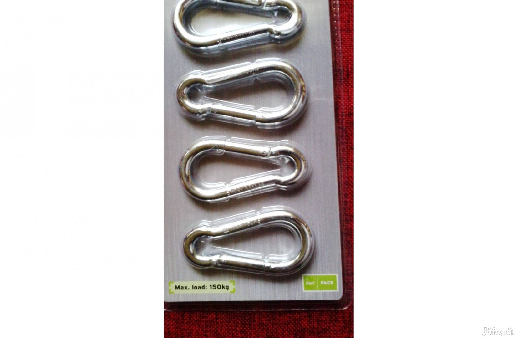 Karabiner rugós nem rozsdásodó acél max 150 KG újak