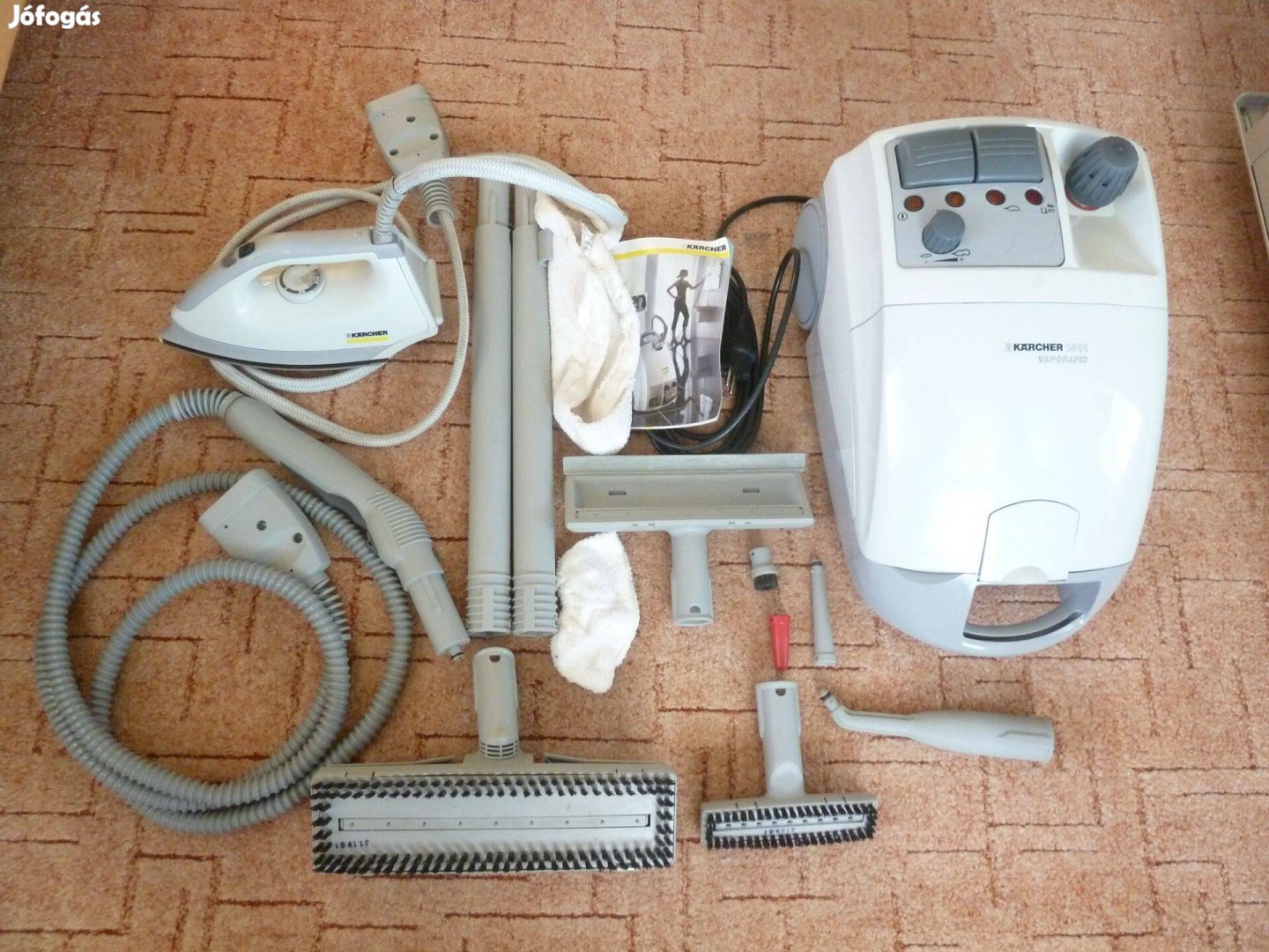 Karcher 1501 gőztisztító (fertőtlenítésre is!145 fokos gőz!!!), gőzállomásos vasalóval,rengeteg tartozékkal(padló,ablak,fuga,kárpit fejstb szinte új állapotban eladó.Állítható gőz mennyiség és víz tartalom,,Ezeket még nem garanciaidőre gyártották! Megtekinthető: Székesfehérvár-Budaörs-Veszprém