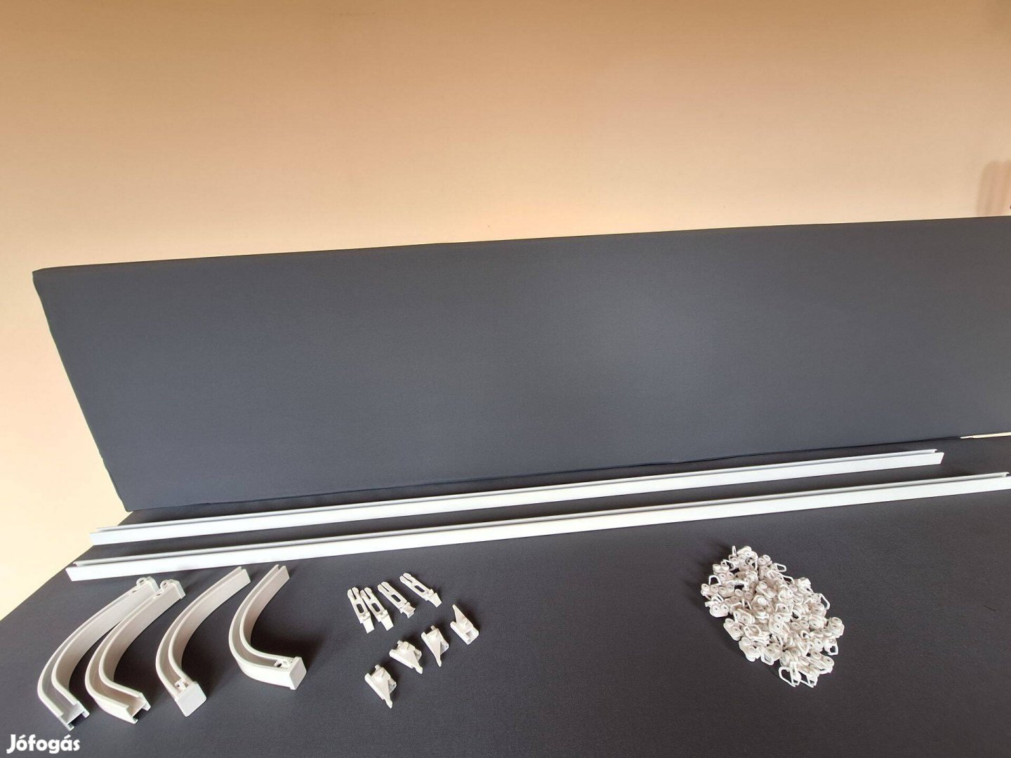 46 darab Csúsztató+horog, 4 darab Sarokelem, szimpla sín + rögzítéshez szükséges tartozékok.