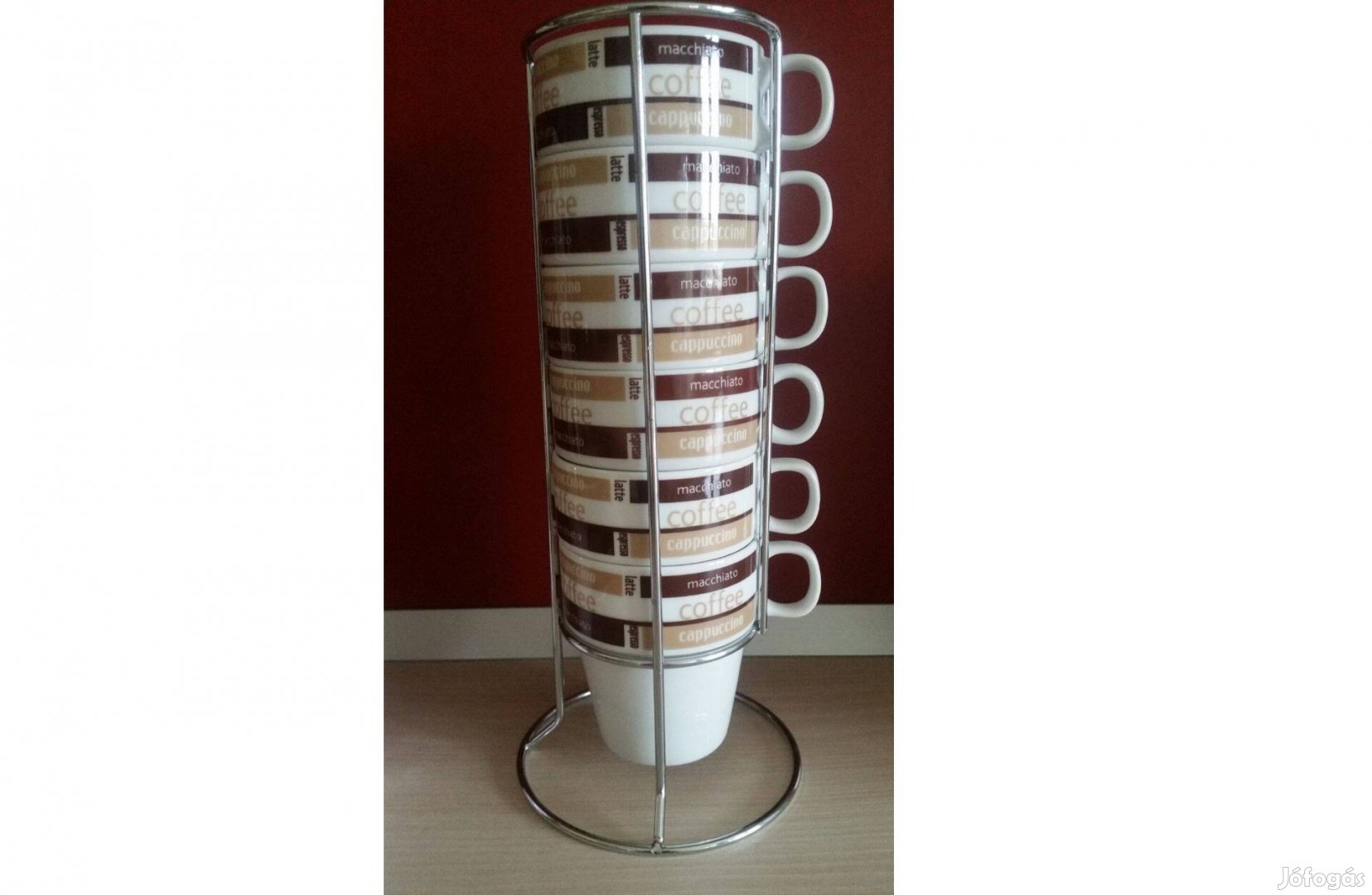 Praktikus, helytakarékosan tárolható, dekoratív kávé-latte-cappuccino bögre szett. 6 db feliratos bögre, hibátlan nem használt.