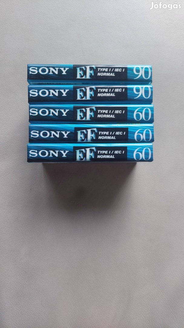 Gyűjteményemből eladó, eredeti 2 db Sony EF 90 perces + 3 db Sony EF 60 perces magnókazetta. Az ár az 5 db kazettára vonatkozik. Gyártási év: 1999-2002. Az EF széria konkrétan az utolsó Sony által gyártott kazetta sorozat. Bontatlan gyári fóliás állapotban. A fotók a kazettákról készültek.