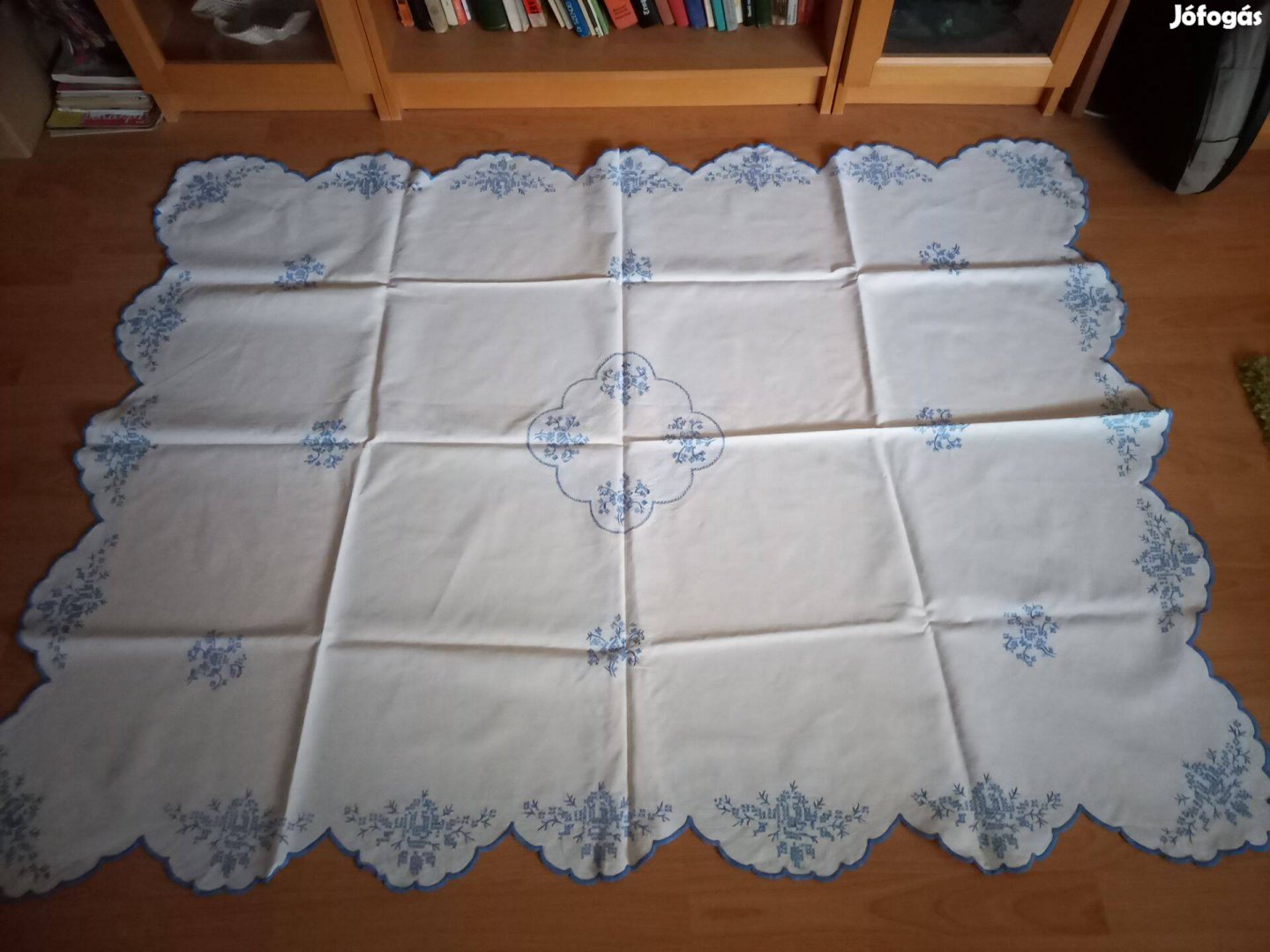 Kék, keresztszemes hímzéssel készült terítő szép állapotban