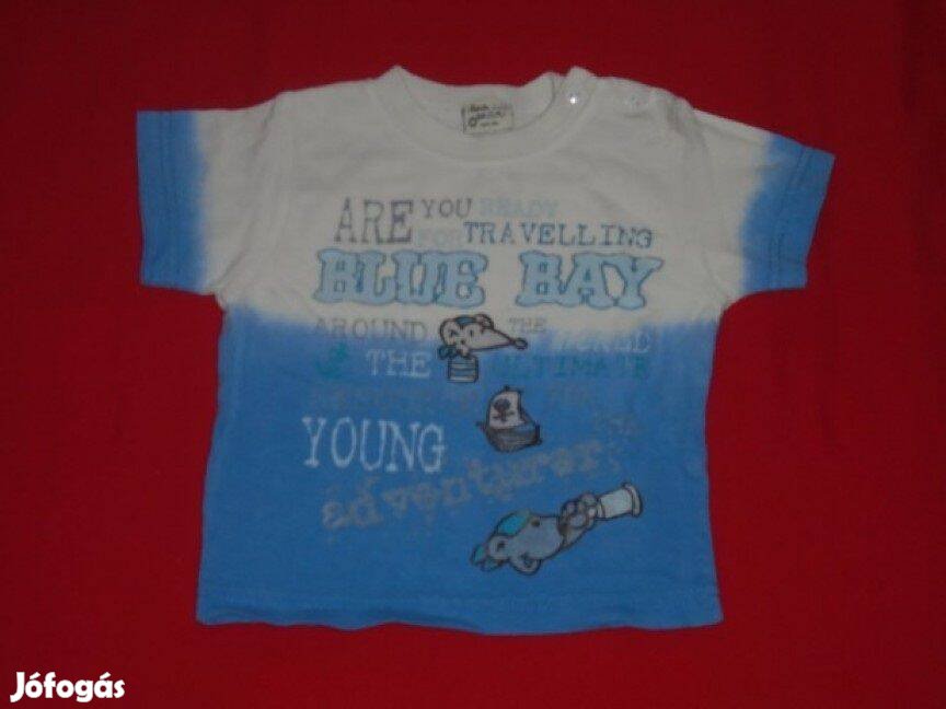 Kék fehér mintás feliratos rövid ujjú póló 6-9 hó méret 74