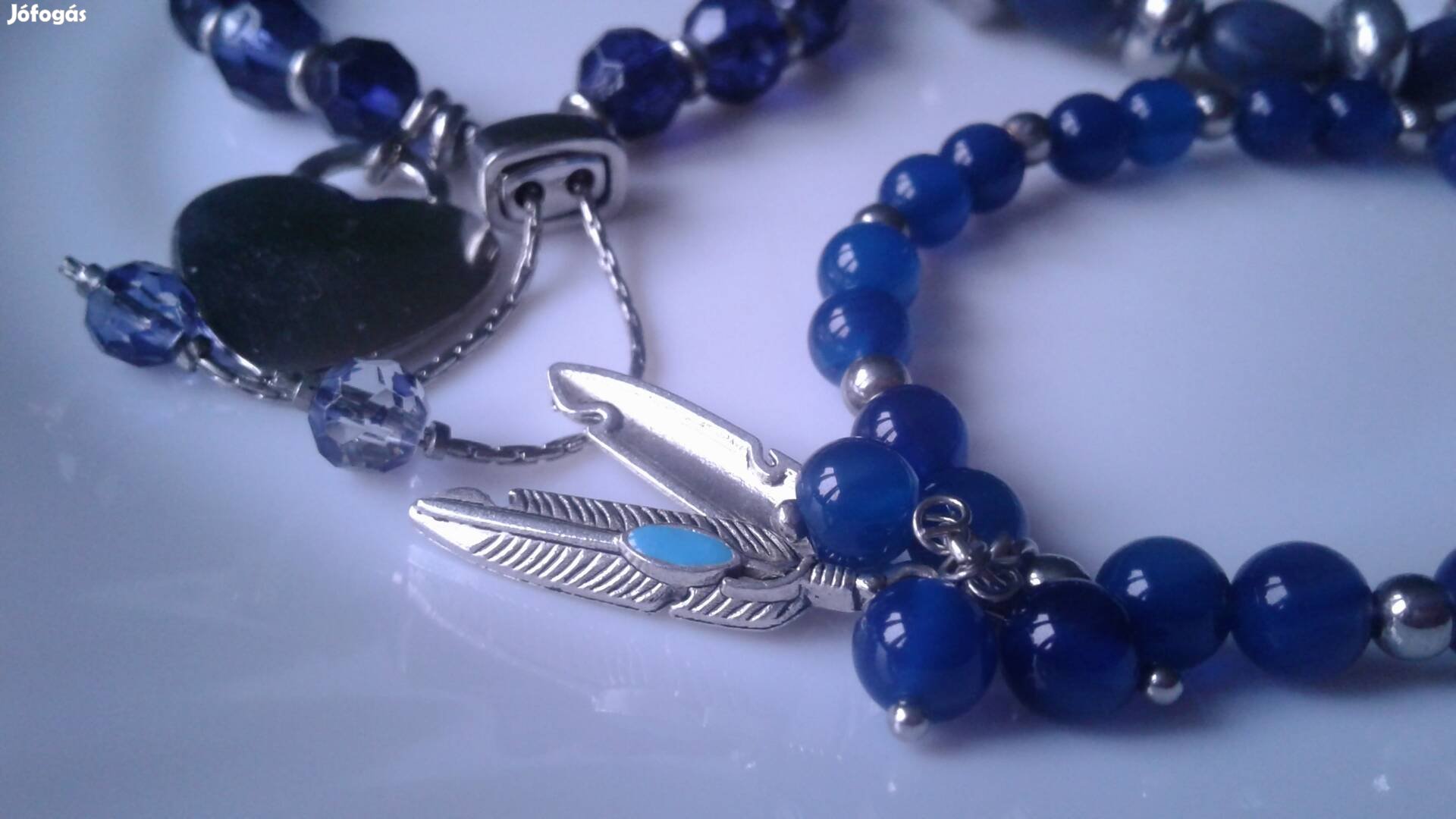 3 db, kék gyöngyös karkötő, anyagukat tekintve van köztük üveg, fém, műanyag gyöngy is. Kettőn zsuzsukkal.