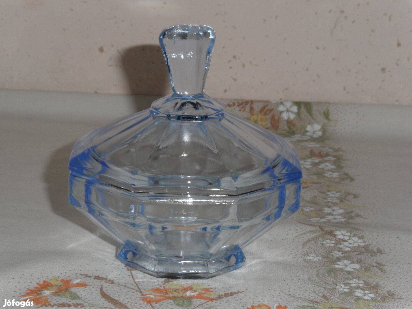 A képen látható kék üveg cukortartó, bonbonier eladó.