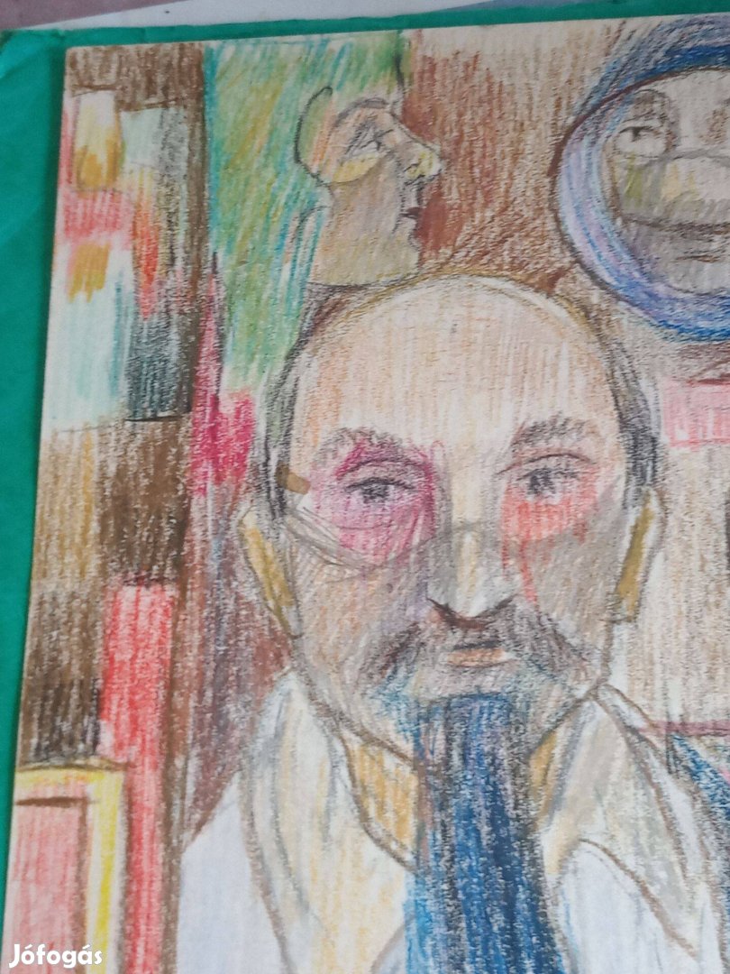 Kékszakállú herceg ceruzarajz, 21x31 cm 19000ft óbuda hagyatékból Kéks