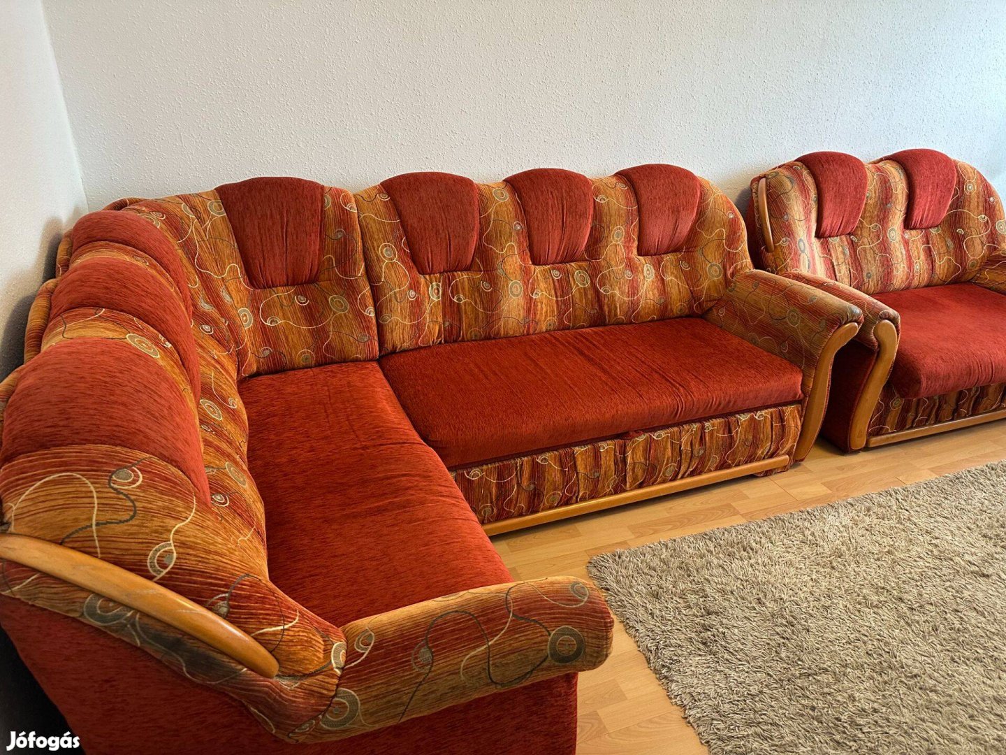 Eladó a képen látható komplett nappali ülőgarnitúra, megkímélt állapotban. A garnitúra több elemből áll, így egy teljes nappali berendezésére alkalmas.