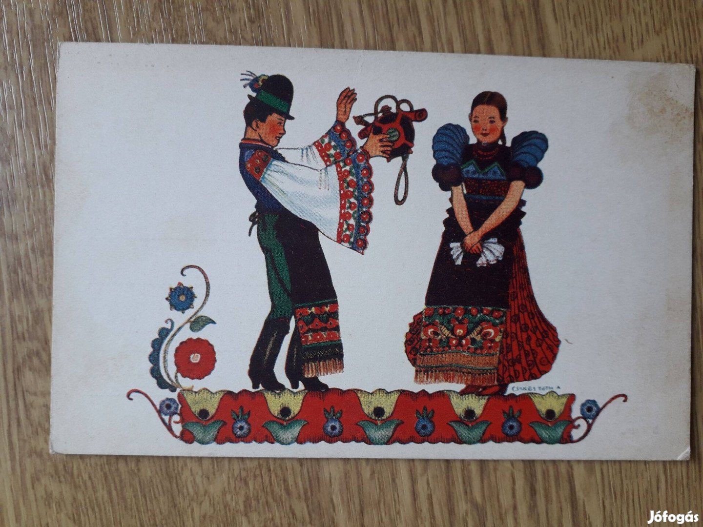 Régi, postatiszta levelezőlapok népi motívumokkal. Külön is elvihetők.