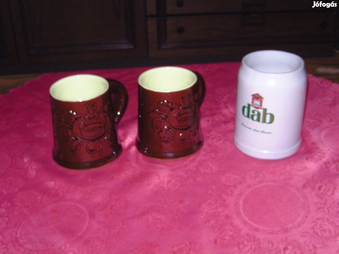 Eladó a képen látható barna kerámia korsó, 7 db van belőle, 11 cm magas, 8 cm átm. 300,- Ft/db, személyes átvétel az M3-as metró vonalán Köki terminál - Határ út