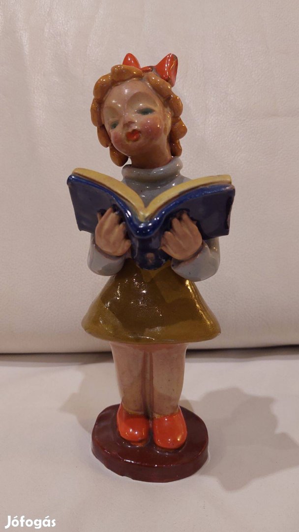Kerámia szobor, könyvet olvasó lány, 22.5 cm