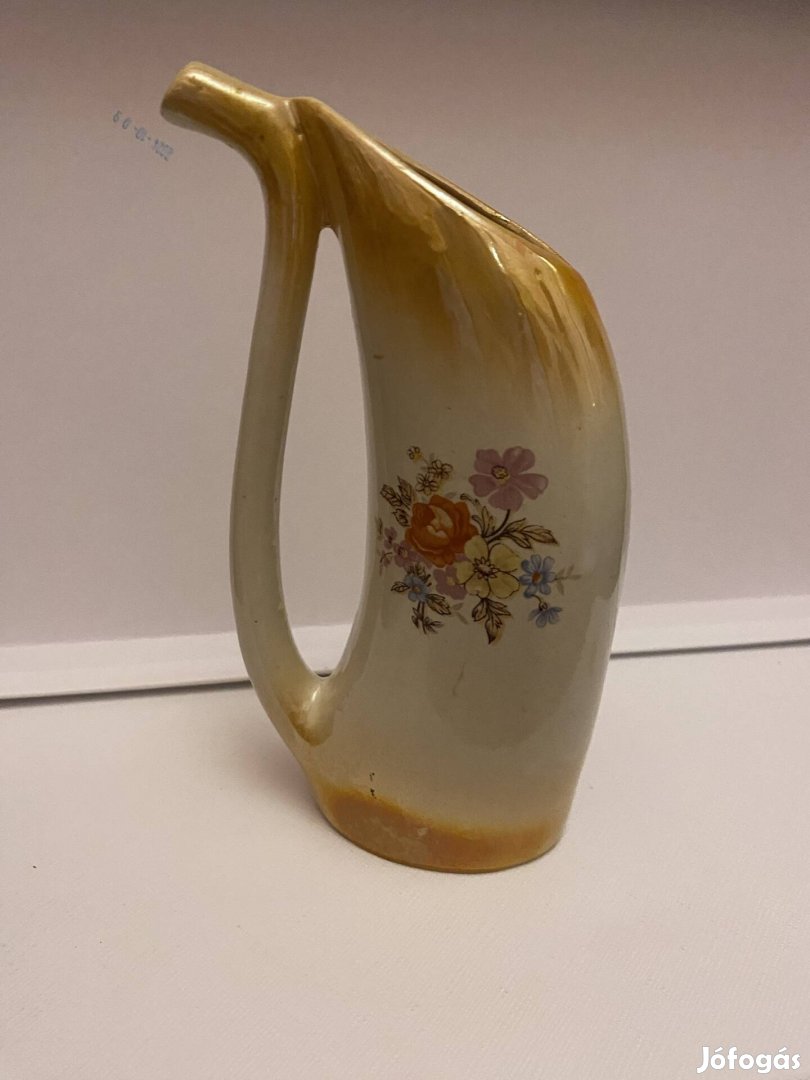 * Díszítés: Kézzel festett vagy transzfernyomatos virágminták láthatók az oldalán, narancssárga, rózsaszín, kék és sárga színekkel. A felső peremén és a fogantyú bizonyos részein arany vagy narancssárga színű díszítés van.