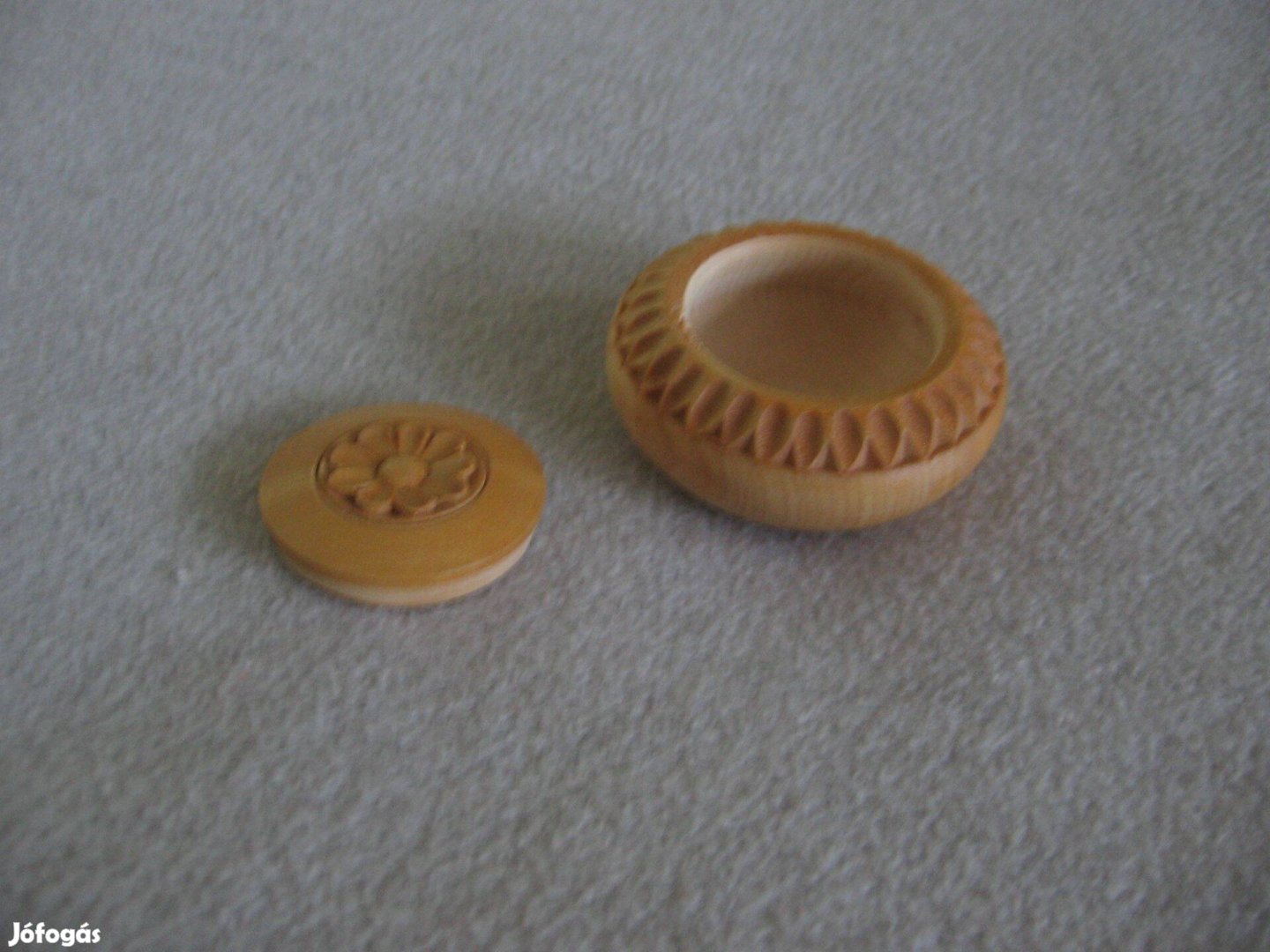 Kerek tégely, faragott fa