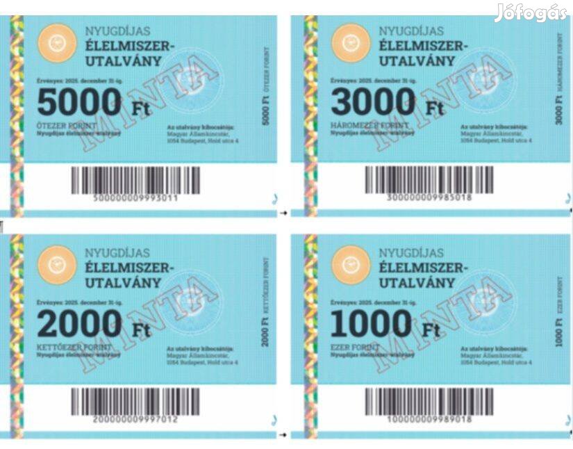 Keresek megvételre a 2025-ben kibocsátott nyugdíjas élelmiszer utalványokat (lásd a képet), 100 Ft/db áron. Csak hibátlan darabok érdekelnek; szakadt, foltos, gyűrött nem kell. Csak személyes átvétellel.
