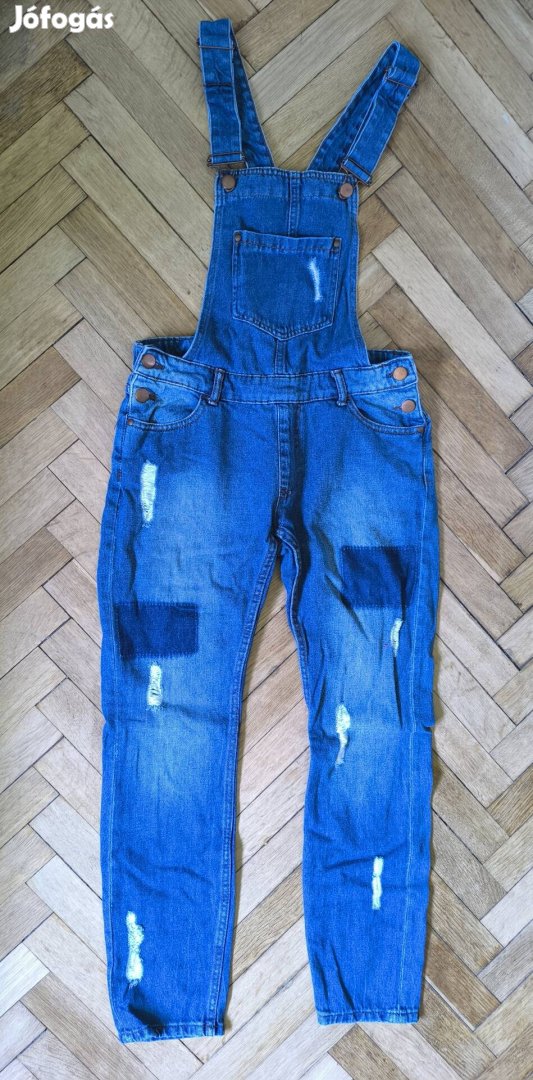 Hosszú, egyenes szabású, S méretű farmer kertész nadrág.