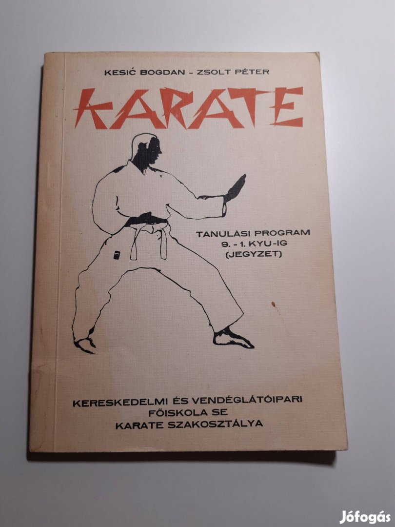 Eladó Kesic Bogdan- Zsolt Péter: Karate tanulási program 9. - 1. kyu-ig (jegyzet) című használt állapotú, a Kereskedelmi és Vendéglátóipari Főiskola SE Karate Szakosztálya gondozásában megjelent könyve. Személyes átvétel készpénzes fizetéssel Budapesten a 3.,4 kerületben illetve megbeszélés szerint. Postán maradóra illetve Posta csomagautomatába tudom küldeni vételár + szállítás költség (1490 forint) előreutalása után.