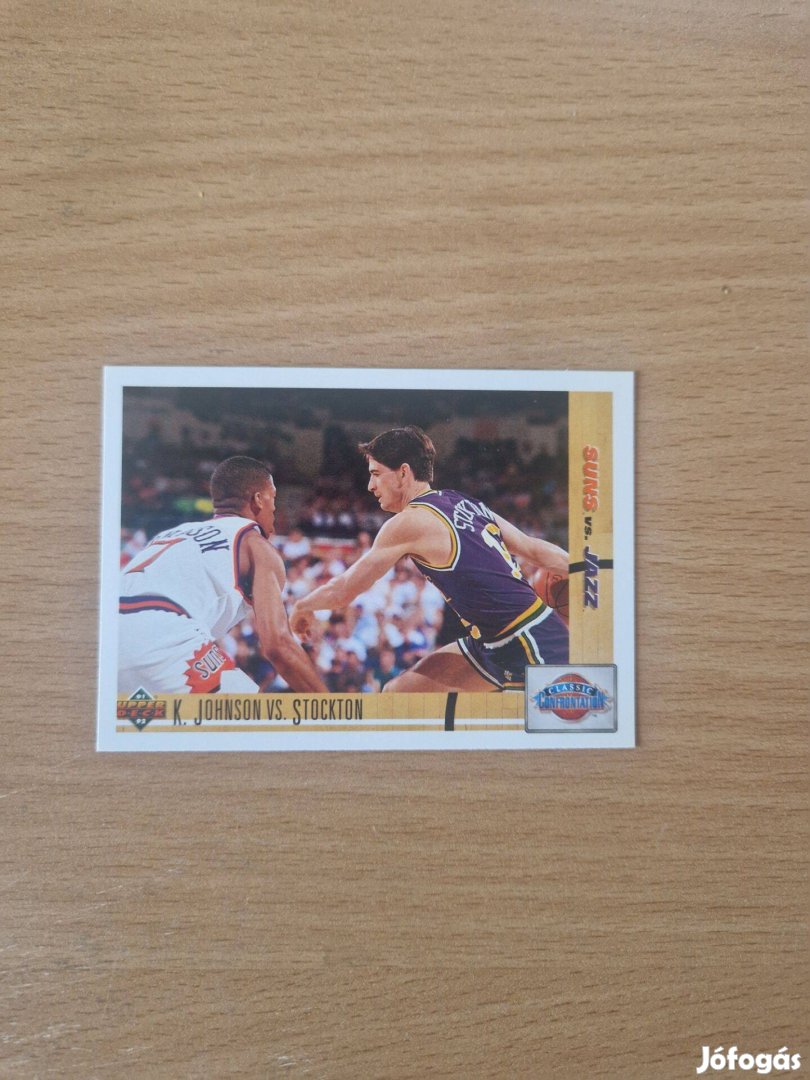 Eladó Kevin Johnson vs. John Stockton Upper Deck 1991-92 #32 kosaras kártya, hibátlan állapotban, budapesti személyes átadással, Revolutra utalás esetén postázom is Foxpost-tal.