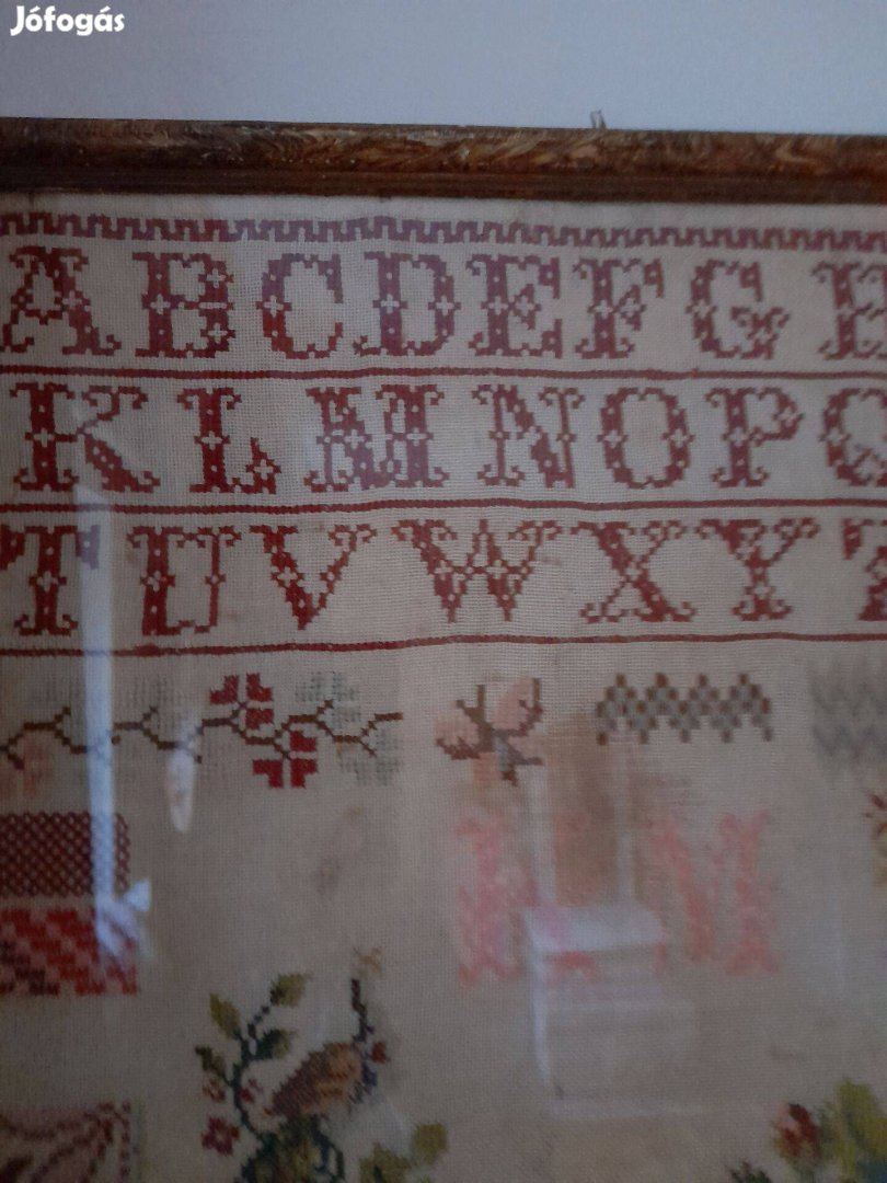 Korabeli (1800 as év vége)értékes és szép kézimunka üvegezett kerettel védve