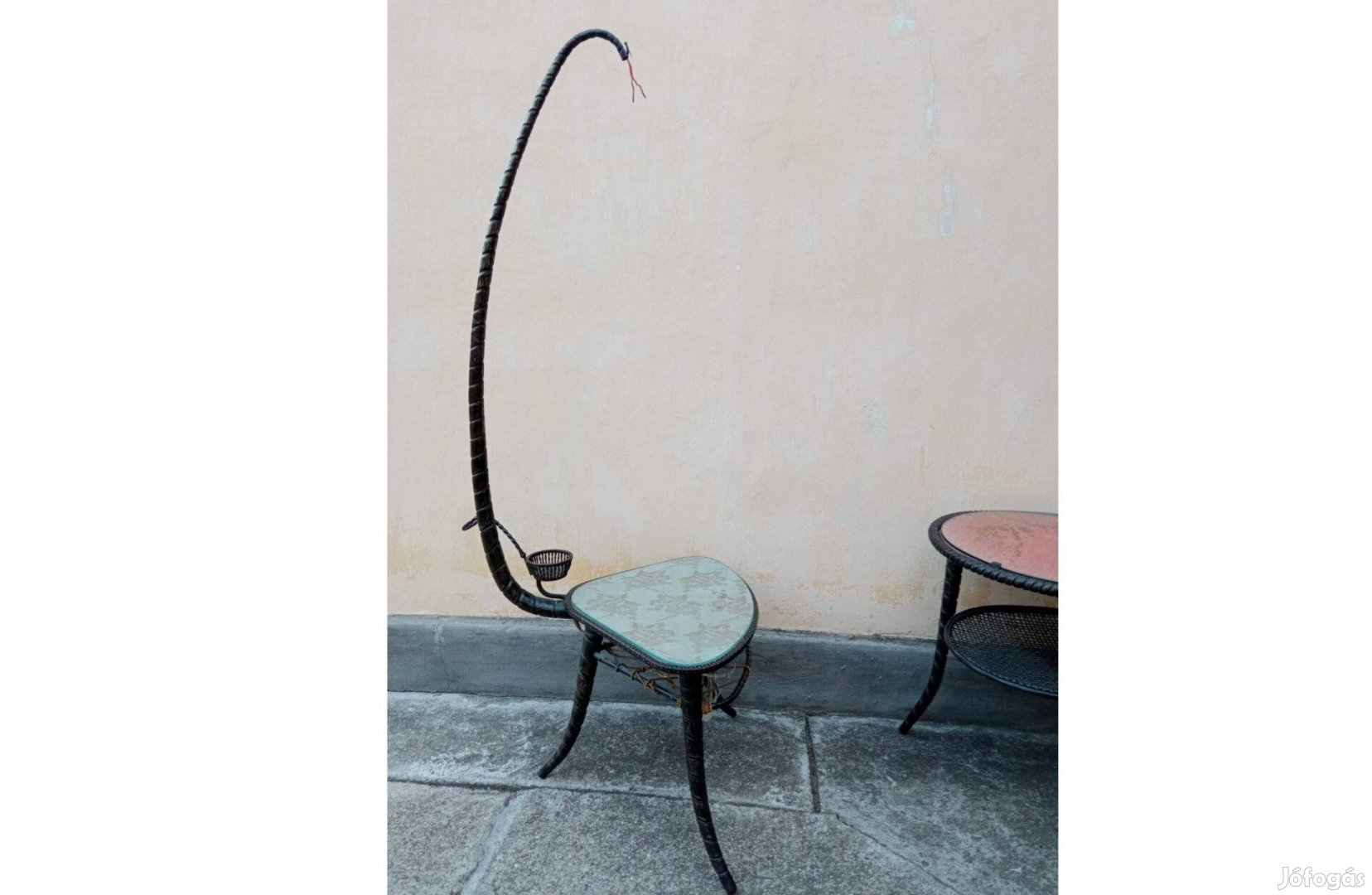 Egyedi kézműves fémmunka, igazi ritkaság, mely állólámpából és egy kis lerakó asztalból álló szett. Vezetéket újra kell húzni benne.