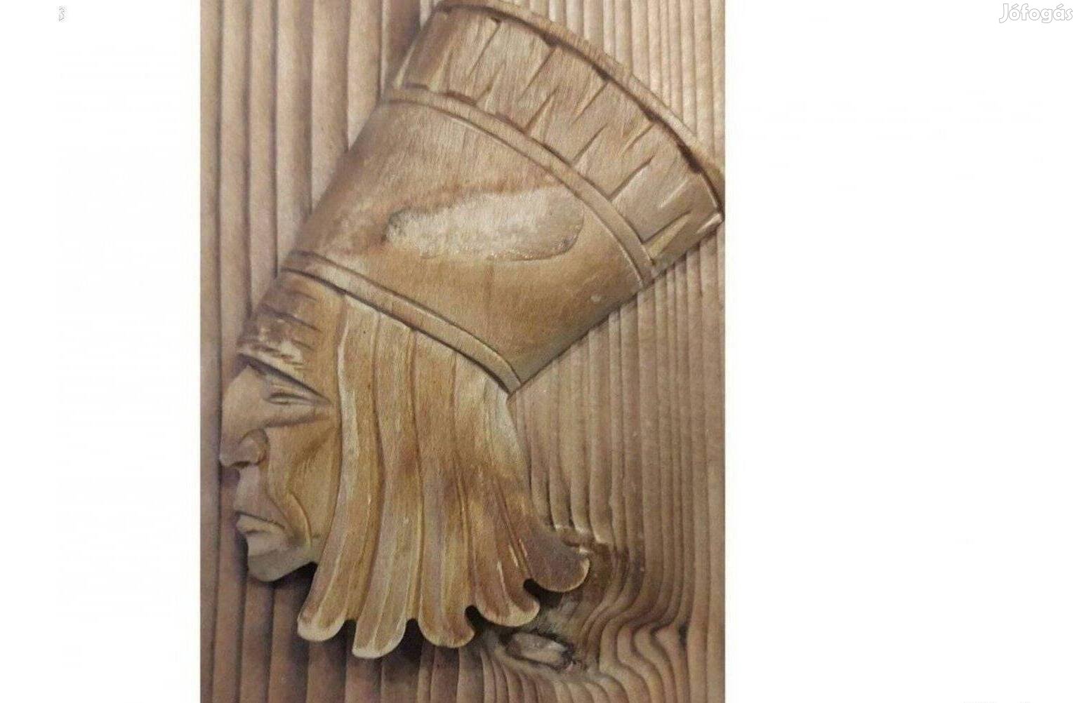 A képen látható Indián fej - kézzel faragott fa falidísz.