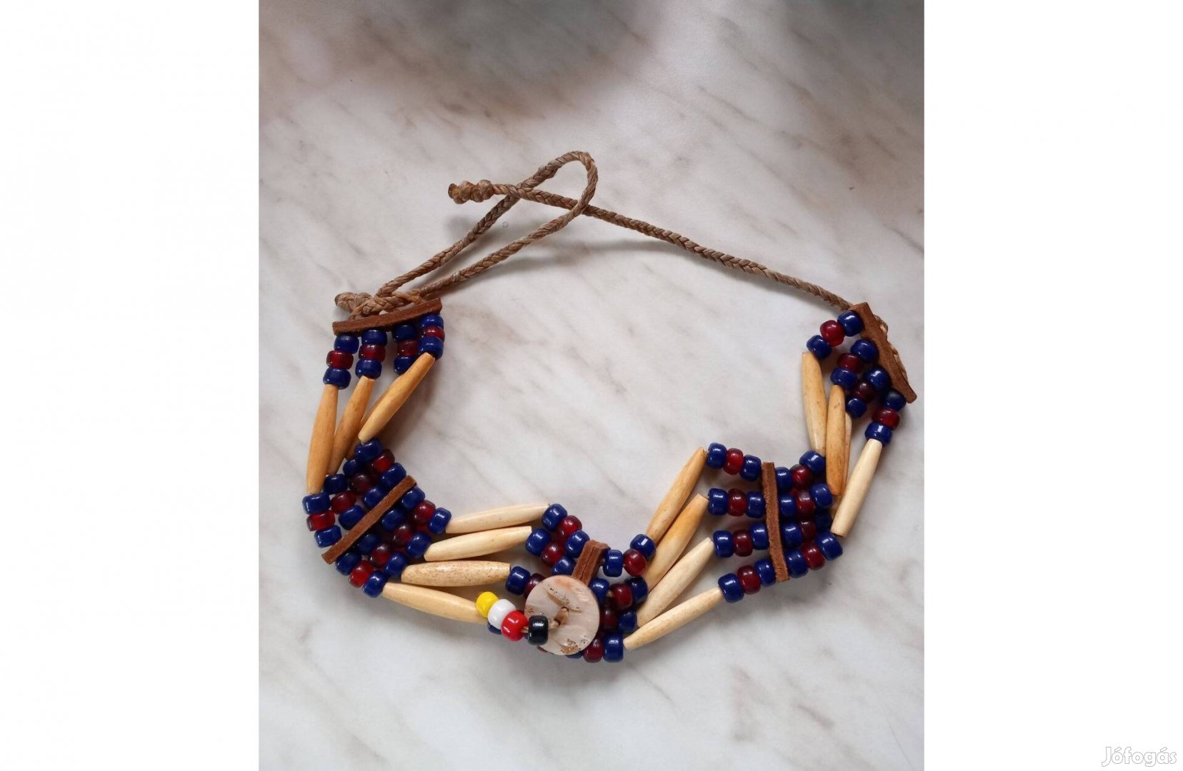 Kézzel készített Indián nyaklánc 60 cm hosszú, 4 cm sz.- Új