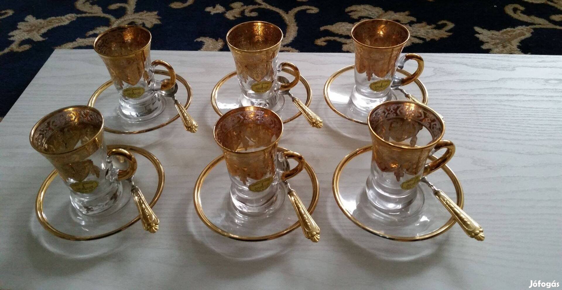 Kézzel készített muranoi kristály arannyal futtatott kávéscsésze készl