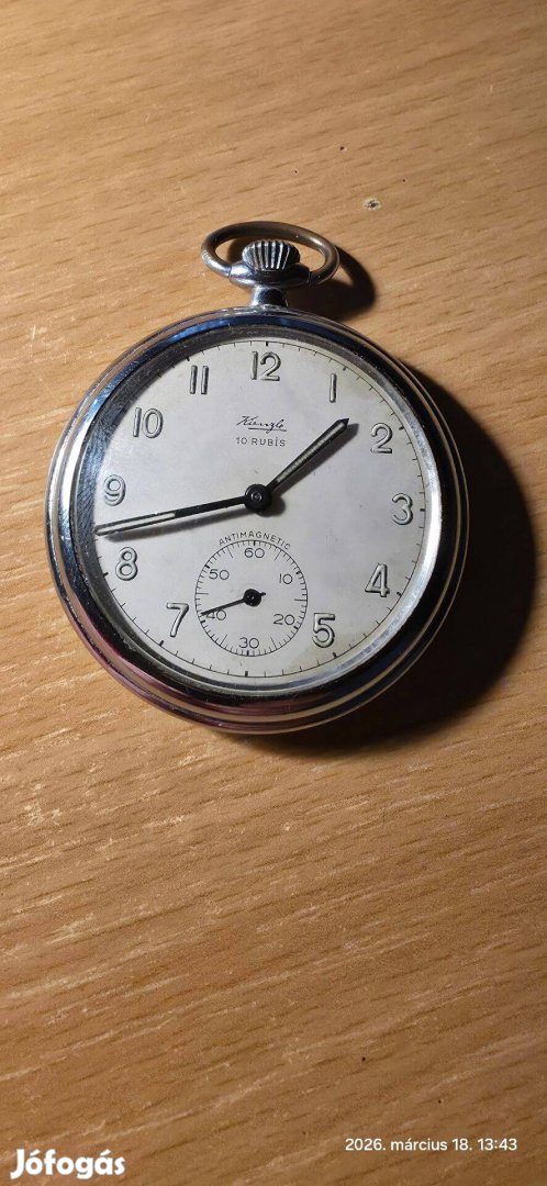 Vszleg kb. az 1950-es években gyártott NSZK gyártmányú, 10 köves, koronáról húzható és állítható zsebóra eladó.